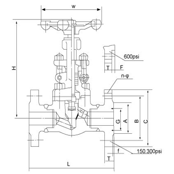 3.Size of connecting end flange:①150;300 or 600 pound grade,according to ANSIB16.5(RF);
